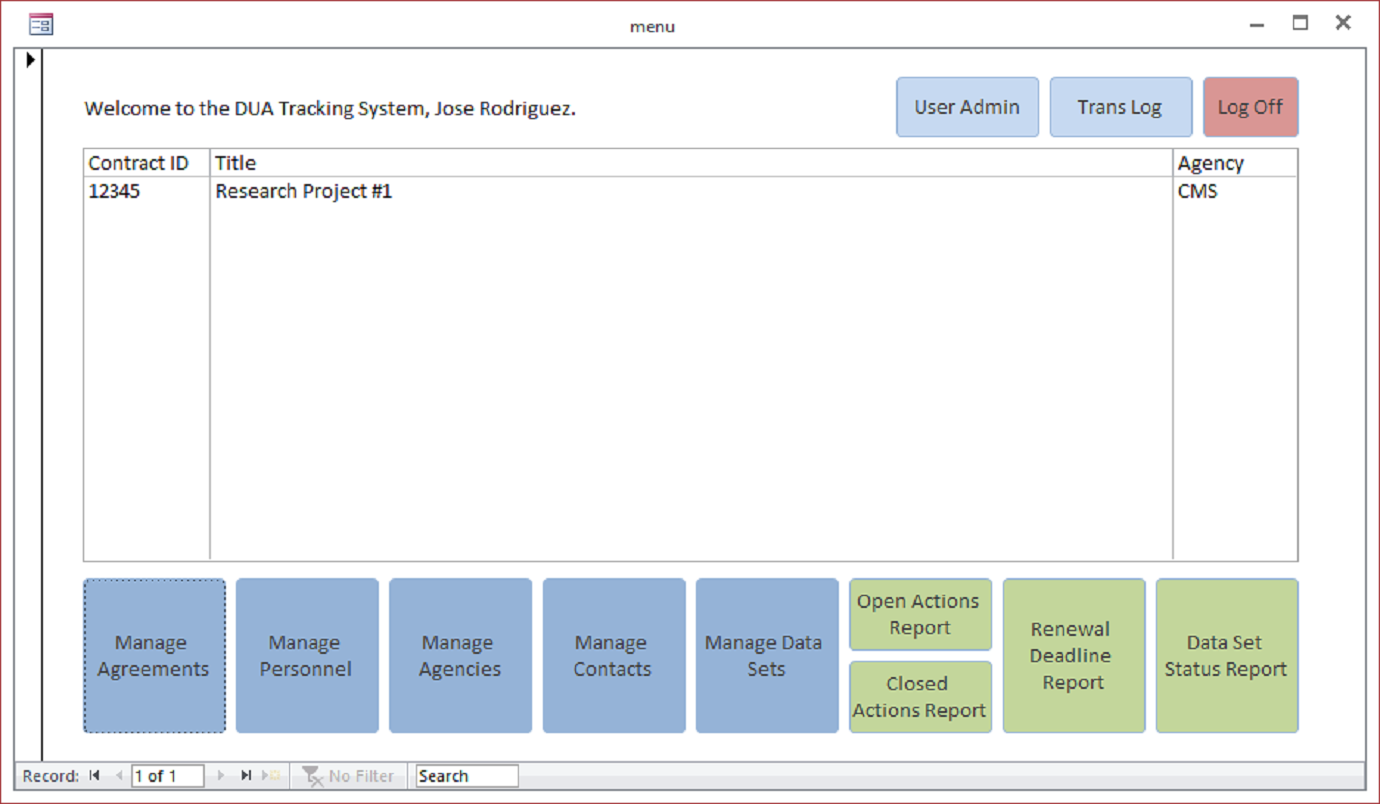 investigator (PI) keep track of grant data use agreements (DUA) they have in